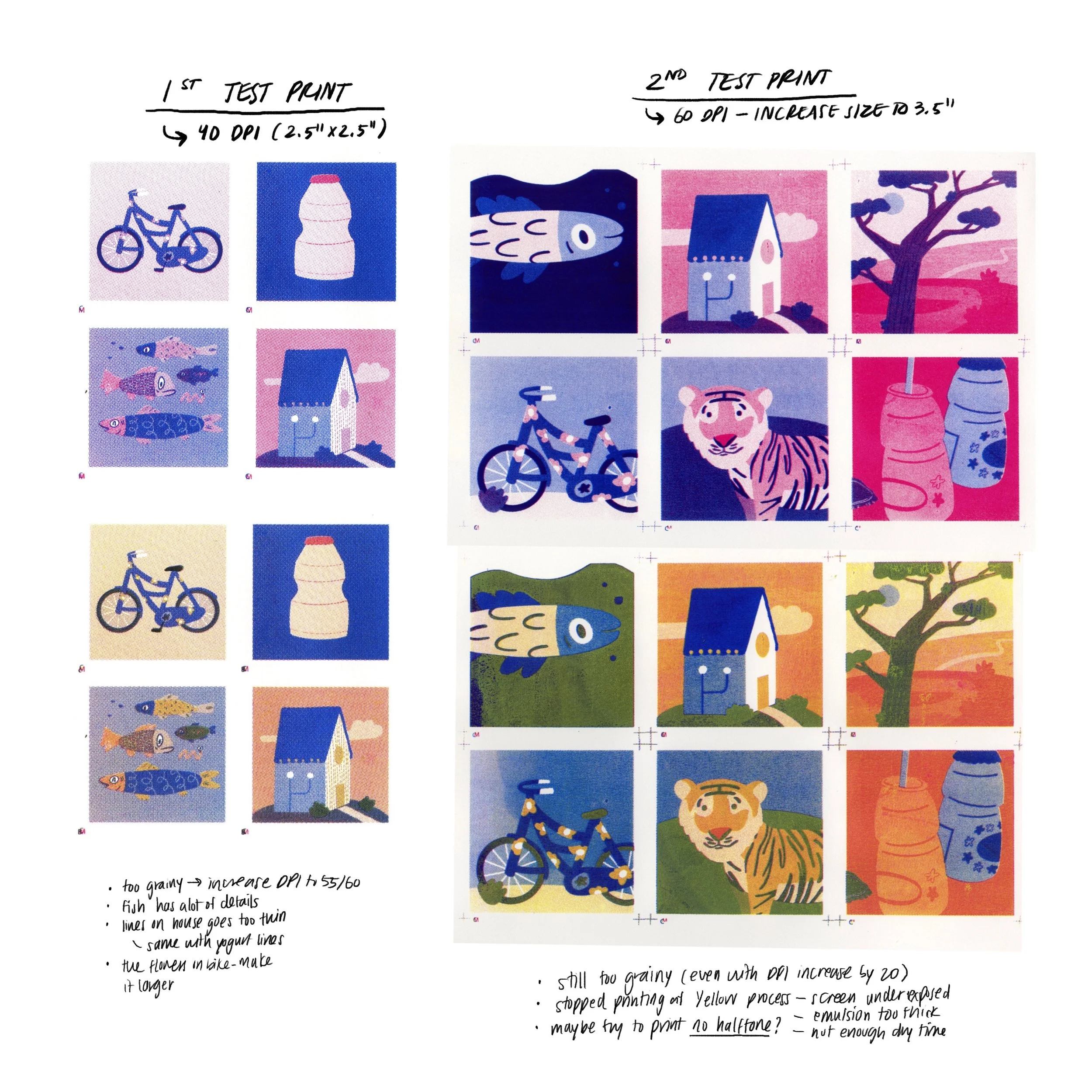 Initially, I had thought of silk-screen printing all the 12 illustrations but because of the time restraints of a term-project, I decided to get the printing out-sourced. I made my own handwriting into a font for more efficiency.